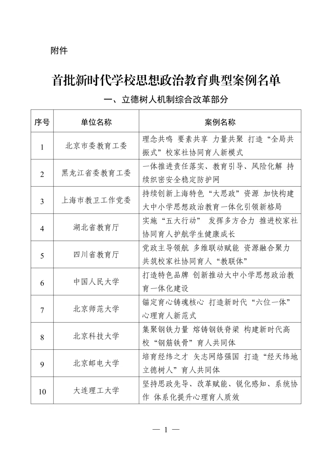 首批新时代学校思想政治教育典型案例名单如下: