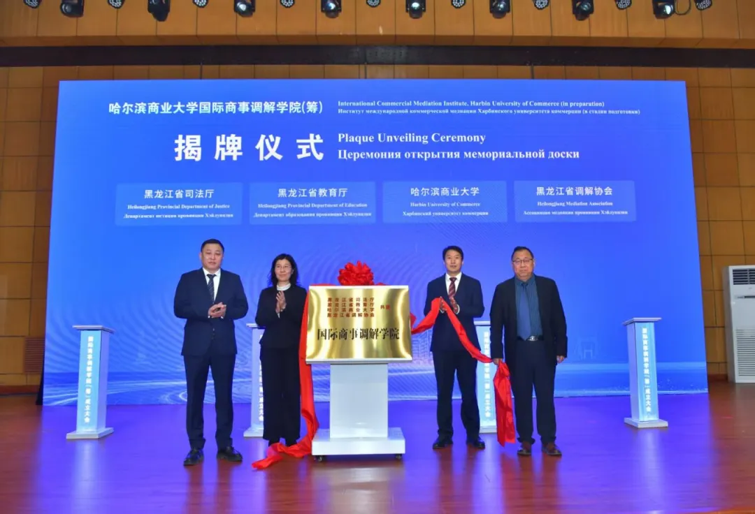 3月27日,国际商事调解学院(筹)揭牌仪式在哈尔滨商业大学举行。学院由黑龙江省司法厅、省教育厅、哈尔滨商业大学、省调解协会四方共建,依托哈尔滨商业大学实体化运作,致力探索“政、校、行”协同育人新模式。省教育厅副厅长程爽、省司法厅副厅长姜涛、哈尔滨商业大学校长李景义、省调解协会副会长董玉庭致辞并为学院揭牌。