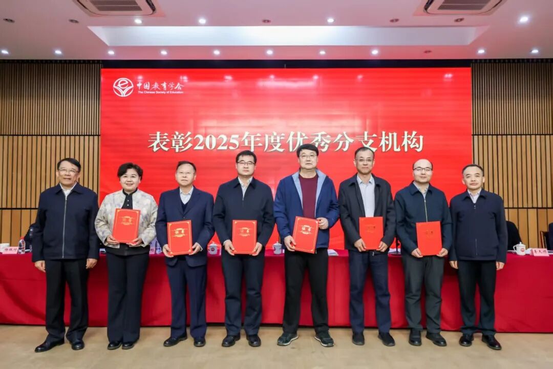 会议表彰了中国教育学会2025年度优秀分支机构。吕玉刚宣读了《中国教育学会关于对有关分支机构予以表彰的决定》,25个分支机构分别荣获组织建设奖、品牌建设奖、学术建设奖、规范建设奖。中国教育学会会长朱之文、顾问郑富芝共同为学会2025年度优秀分支机构颁发证书。