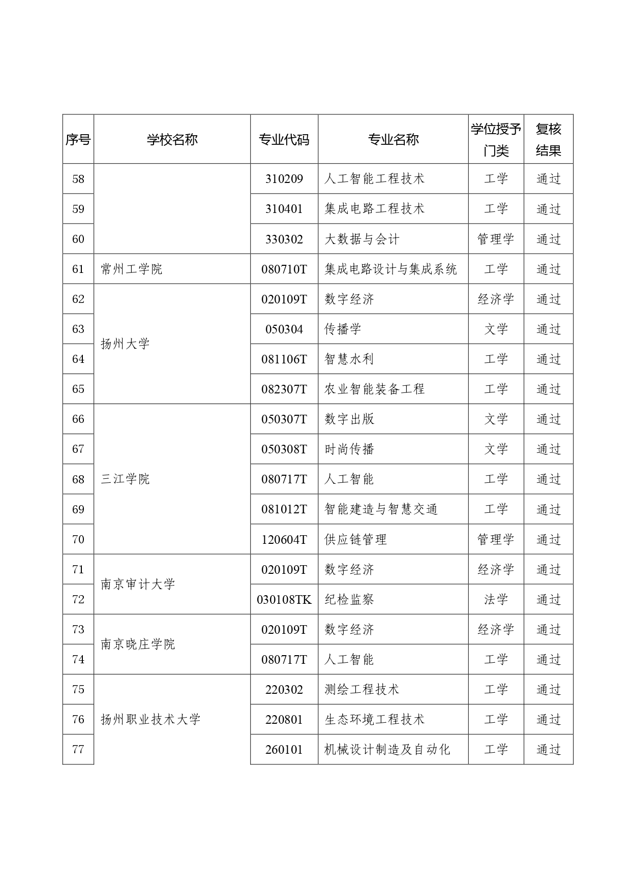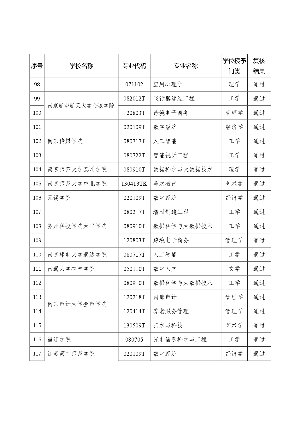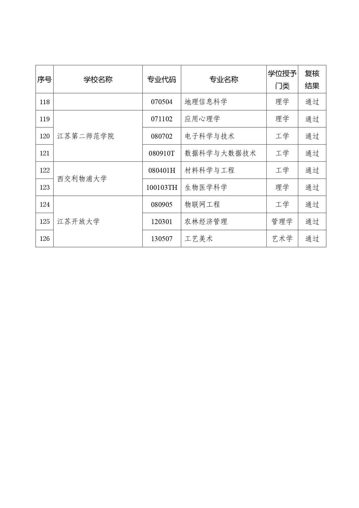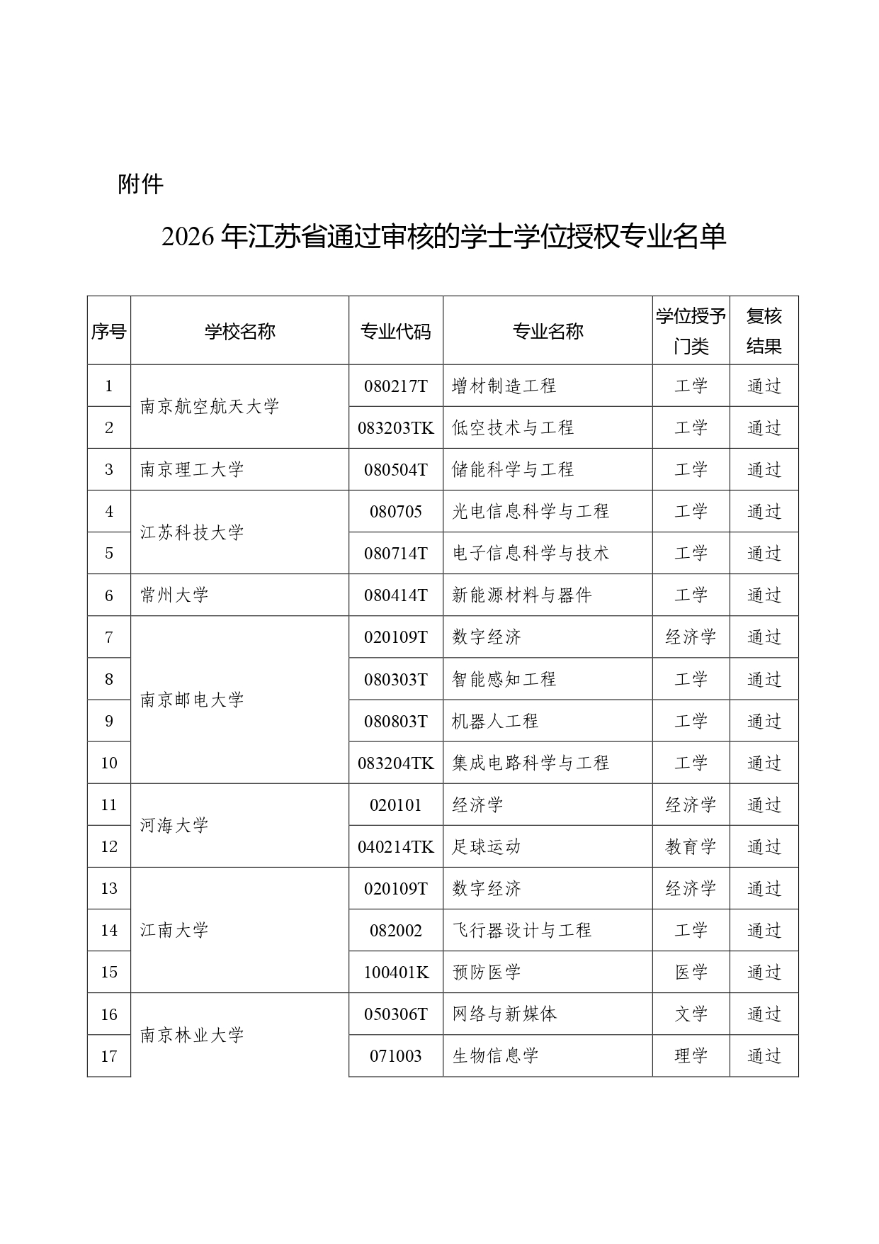 126个!2026年江苏省学士学位授权专业审核结果公示