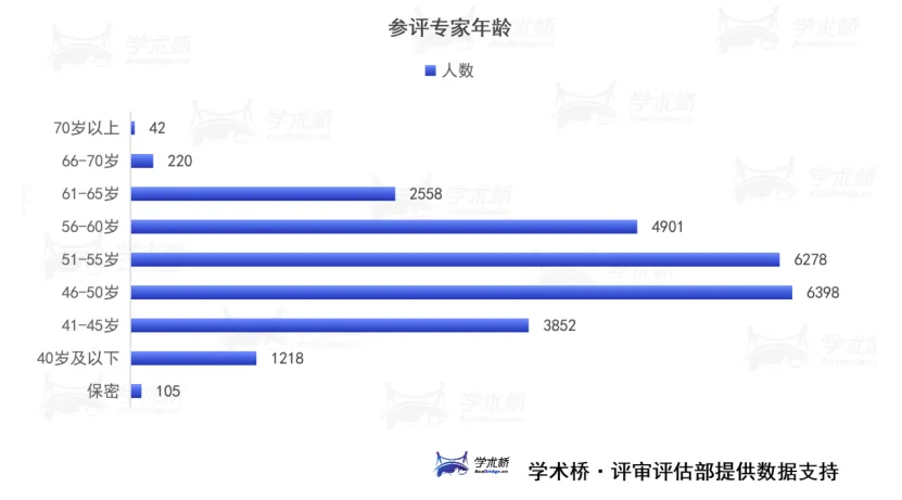 评审质量如何保证?关键在于高水平的专家队伍。《报告》对参评专家的画像显示,这是一支高度专业化、以中青年为核心的力量。数据显示,在2025年的25572名参评专家中,25522位专家为正高级职称,占比99.80%。从年龄看,多数参评专家集中在46-50岁和51-55岁两个年龄段,合计占比高达49.57%,接近一半,构成参评专家群体的核心力量。专家来源也高度集中于高水平学术机构——来自“双一流”建设高校的专家占比高达78.03%。