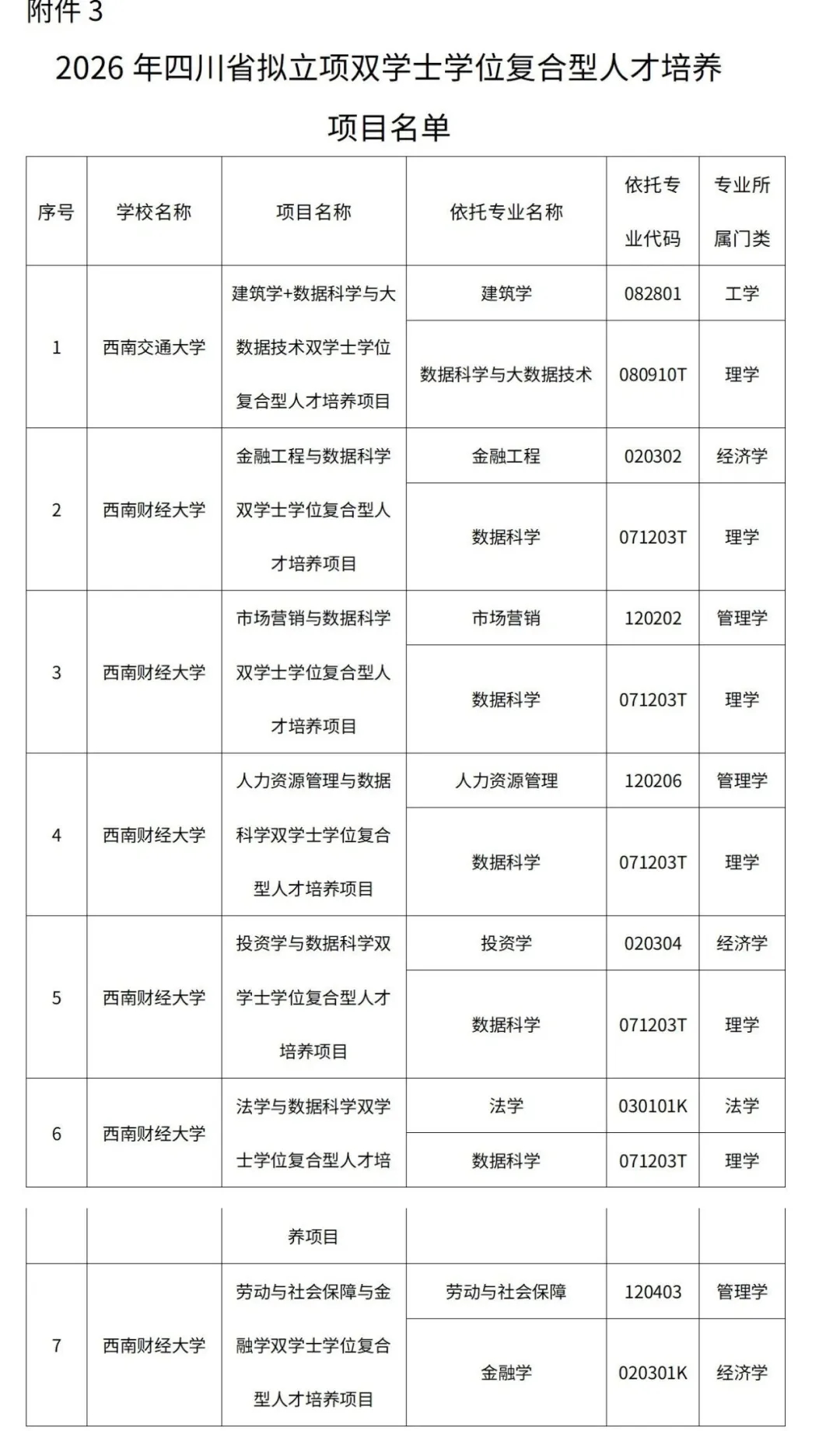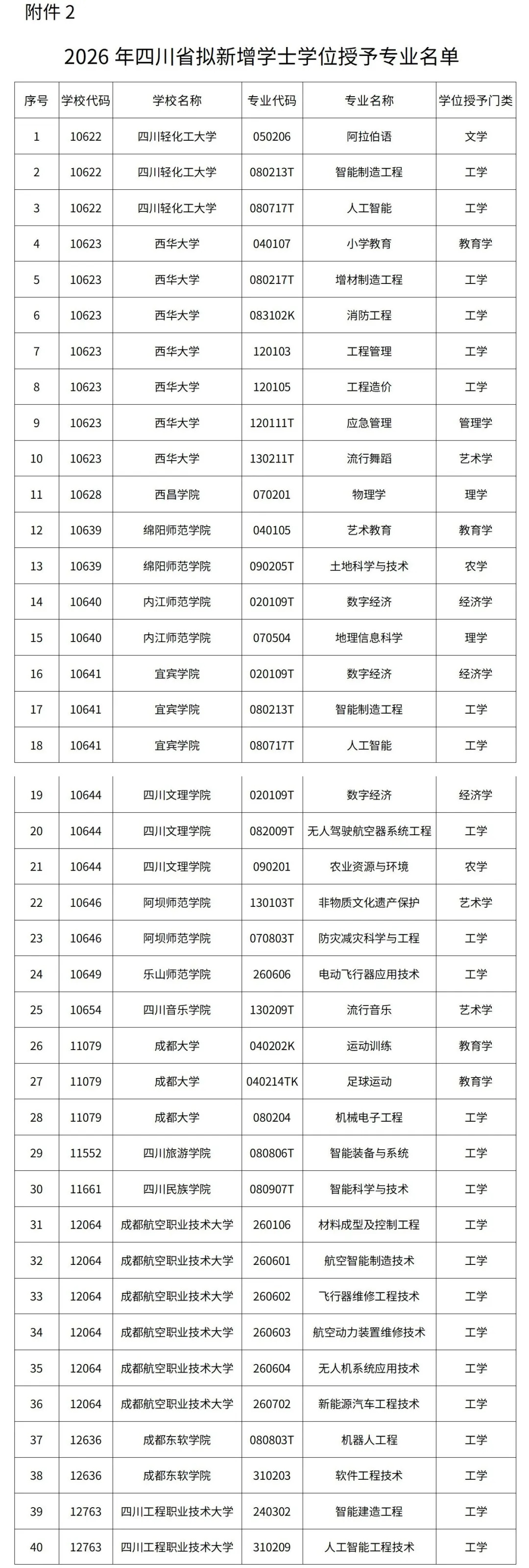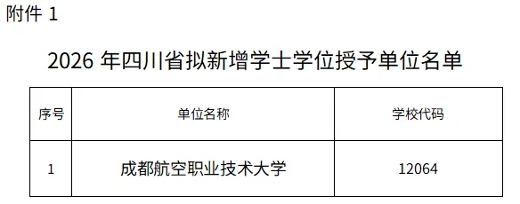 近日,四川省教育厅网站发布《四川省人民政府学位委员会办公室关于2026年拟新增学士学位授予单位、授予专业及拟立项双学士学位复合型人才培养项目名单的公示》。