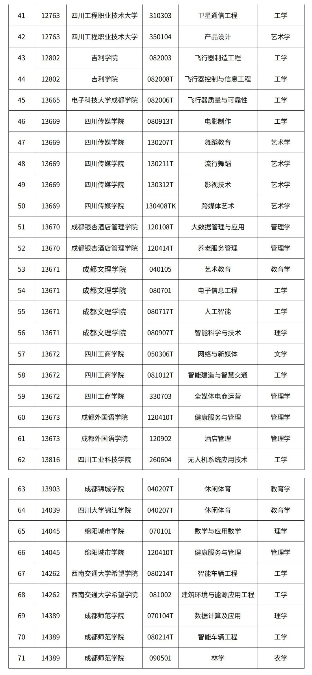 教育厅公示!四川拟新增71个学士学位授予专业