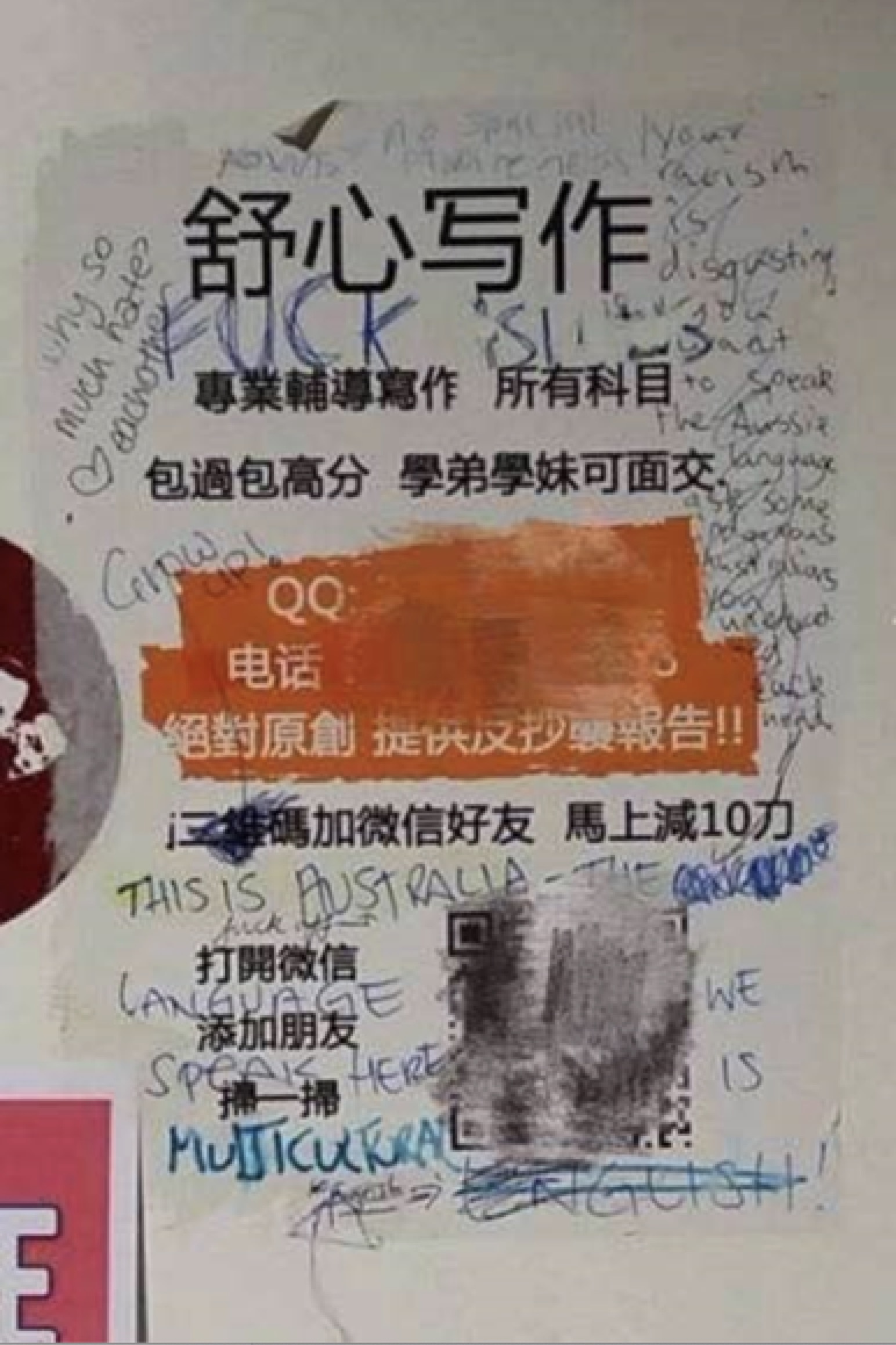 论文舞弊走出国门,覆盖面更大的不是学者,而是我们的留学生。日前,在澳洲的悉尼大学,卫生间里贴满了代写论文的中文小广告,引起学生之间的攻击与争论,掀起轩然大波。澳洲政府近年已经多次抓获了代写论文,代为考试的留学生犯罪团伙。根据美国一个机构的调查,我们在美留学生,舞弊已经成为被退学的主要原因,上升势头明显。