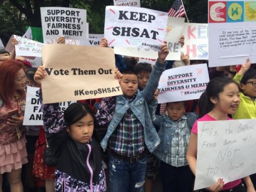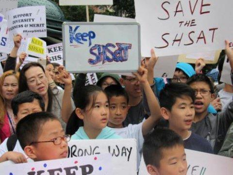 不久前,纽约市教育总监到社区调研,遇到了两拨抗议人群,主题都是一个:取消纽约市最好的9所特殊公立高中招生考试(SHSAT)。纽约市目前的方案是,把考试录取改为配额录取,明年开始有20%名额给所谓弱势学生,三年内把西语族裔和黑人等族裔学生提高到45%。