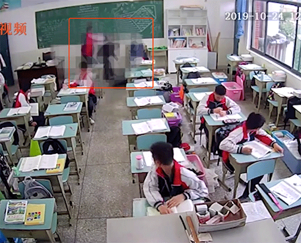 10月25日,一则监控视频在网上热传,视频中显示:10月24日12时21分左右,在一间教室内,一名身着西装的中年男子拿着雨伞缓步进入教室,其身后冲进一名身着校服的学生,手持砖头对中年男子头部猛击9次,致男子倒地,头部流血不止。从监控视频来看,该男子疑似学生们的老师,事件发生后,有学生拿手机拨打了120电话。(看度直播)