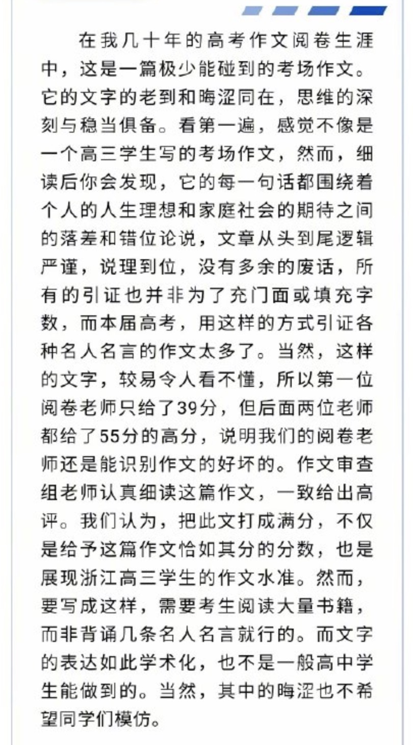 △浙江省高考作文阅卷大组组长陈建新对该文的点评