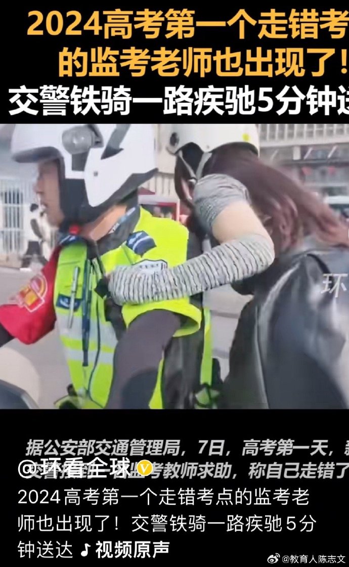 有一种说法,说这位老师实际是送考老师,并非监考老师。当时这位老师的学生分布在两个考点,只是寻求警察送至第二个考点。显然,这个说法更接近真实情况。