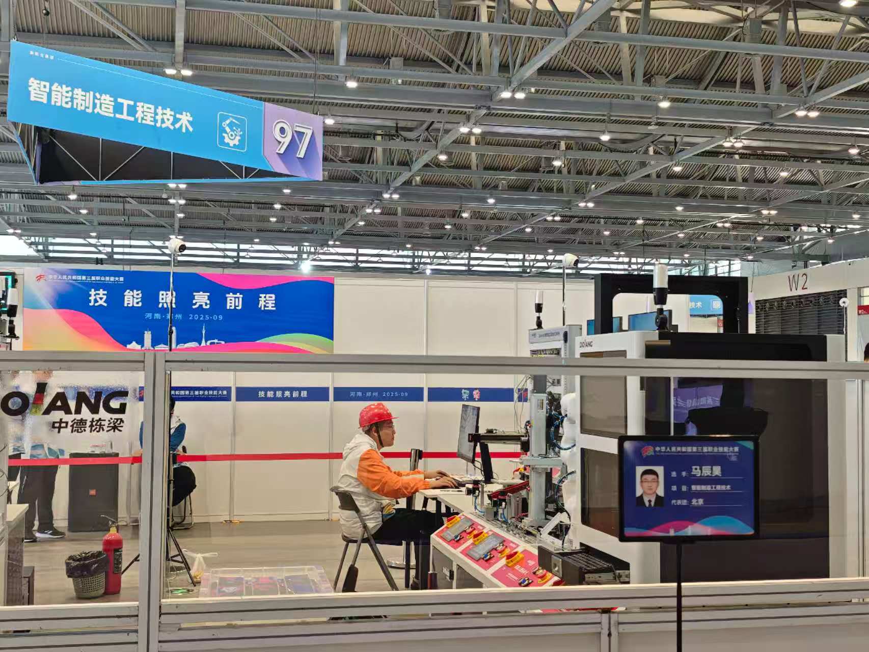 马辰昊总结道:“本次大赛为我提供了宝贵的学习与自我展示平台,助力我实现了从单一工种技术人员向交叉学科、复合型技能人才的转变,使我能够系统学习并掌握智能制造工程技术领域相关的知识与能力,而这一转变恰好响应了国家对‘复合型技能人才’的迫切需求。”当前,国家正大力推进“制造强国”“数字中国”建设,在智能制造、新能源、人工智能等新兴领域,对“懂技术、会操作、能创新”的高素质技能人才存在迫切需求——据人社部预测,到2025年,我国智能制造领域人才需求将到达900万人,人才缺口预计为450万人,且缺口仍在持续扩大。马辰昊认为,唯有始终保持学习热情与对职业的热爱,紧跟国家政策导向与技术发展趋势,不断提升在工业软件操作、智能产线运维、数字孪生应用等方面的核心能力,方能真正践行“技能照亮前程”的理念,在助力国家产业发展的过程中实现个人价值,为我国从“制造大国”向“制造强国”跨越贡献技能力量。