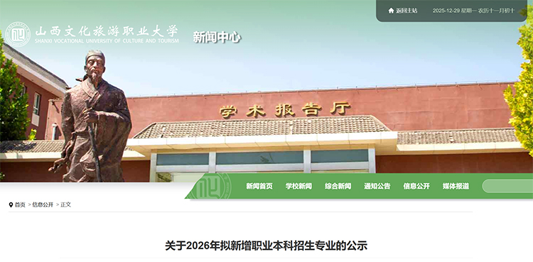 山西文化旅游职业大学拟新增13个职业本科专业!