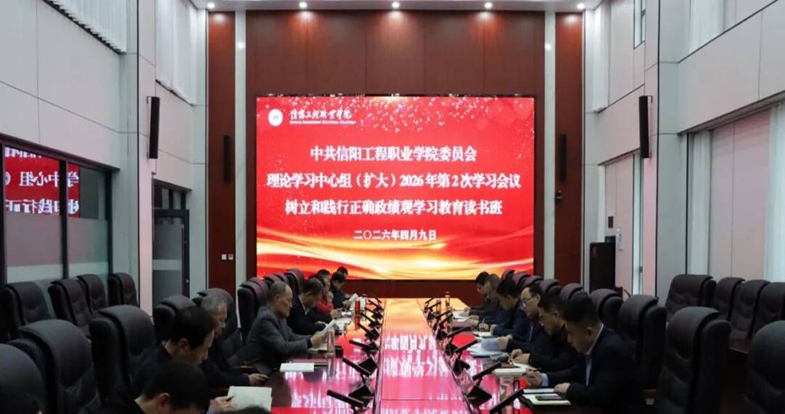 为深入学习贯彻习近平总书记关于树立和践行正确政绩观的重要论述,引导全校党员干部进一步校准思想坐标、明晰办学方向,4月8日至9日,信阳工程职业学院党委理论学习中心组(扩大)举办为期两天的树立和践行正确政绩观学习教育读书班。本次读书班采取分散自学与集中学习交流相结合的形式,学校领导班子成员、各部门负责人、各党总支书记及二级学院院长参与学习研讨,在深学细悟中强党性、明方向、促实干,推动学习教育走深走实、见行见效。学校党委书记吴海涛主持集中学习交流会并作总结讲话。