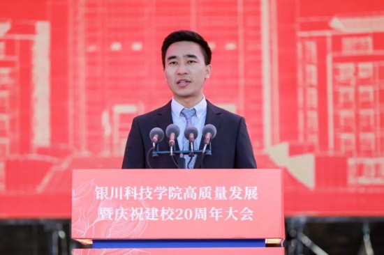 自治区教育工委副书记黄子平代表自治区教育工委、教育厅向全体师生和广大校友致以热烈的祝贺。向长期以来关心支持宁夏高等教育发展的各界人士表示衷心的感谢。他指出,银川科技学院作为我区民办高校的重要力量,始终与全区教育改革发展同频共振、同区域经济发展同向同行,恪守立德树人之根本,熔铸应用创新之精魂,办学规模和结构不断优化、办学条件持续改善、办学质量稳步提升,为全区经济社会发展培养输送了一大批高素质人才。今年以来,自治区党委、政府高位推动高等教育优化布局工作,为全区高等教育发展创造了战略机遇期,也为银川科技学院乘势而上、跨越发展提供了重要黄金期。希望银川科技学院抢抓机遇,以庆祝建校20周年为新的起点,进一步深化改革、勇于创新、锐意进取,全面提升学校的综合实力、核心竞争力和社会影响力。