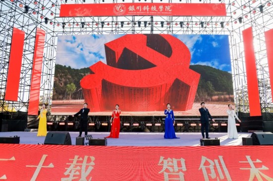 大会开始前,银川科技学院师生代表为学校20周年校庆献上歌曲《领航》,动情的歌声、细腻的表达,触动着每一位银川科技学院人的内心,表现出了银川科技学院人激扬向上的精神面貌。师生献词《薪火映贺兰》,以诗意盎然的语言和曼妙多姿的舞姿,生动展现了银川科技学院二十年来从戈壁火种到绿洲繁枝的辉煌历程,赢得了在场嘉宾的阵阵掌声。