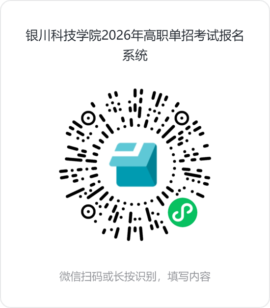 2.报名流程:考生准备好上述材料后,扫描下方二维码进入“银川科技学院2026年高职单招考试报名系统”,根据内容提示填写报名信息,并按规定上传已经准备好的相关材料。
