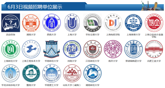 前来参加本次视频招聘会的高校大多收获满满。湖南大学一个上午就视频面试了29人;华东交通大学面试人才30人,材料学院初步达成意向有4人;上海大学整场招聘会单视频面试就面试了107人次;华北水利水电大学副校长则直接与意向人才深度沟通;南开大学、华南理工大学、江苏师范大学也纷纷表达了对本次视频招聘会的认可……另一方面,为照顾海外学者,考虑时差因素,高校不辞辛苦,从6月3日上午7:00一直连续“作战”到晚上24:00,前来应聘本次招聘会的人才对招聘老师一直坚守岗位直到深夜的敬业精神也十分感动,也表示这种招聘会形式很新颖。视频沟通效果虽然与现场沟通有差距,但也给学校与人才提供了一个很好的初步沟通平台,是对双方初步建立了解,和开展后续深入交流的有益方式。若您遗憾错过了本场招聘会也不用失望,学术桥每年会组织两次视频招聘会和两场海外现场招聘会,具体时间请登录活动官网【www.edu.cn/cv】了解。