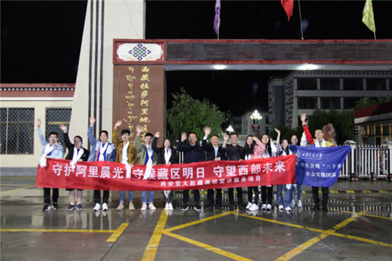 中国教育在线讯 一条古丝绸之路上的铁轨,一支身着藏蓝队服的青年队伍,在这个最为动人的季节,将阿里、拉萨、西安交通大学紧紧地链接在了一起。伴随着向西列车轰鸣声,由西安交通大学马克思主义学院牵头组建的,多学科研究生参与的赴藏调研宣讲服务团队(以下简称赴藏团队)队员喊响了“向西出发”的口号,7月20日至8月18日开始了为期一个月的实践活动。