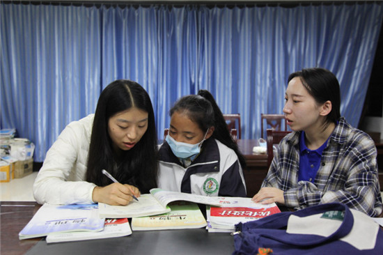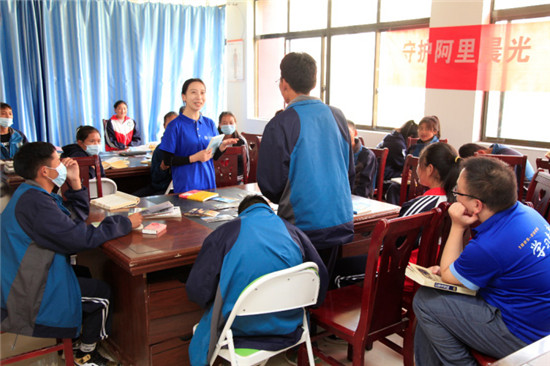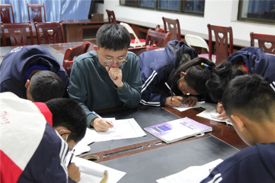 长期被病魔困扰,右腿时不时的阵痛令高一6班的达吉行动迟缓。曲建利、吴青与达吉结成了帮扶对子,定期将她送往神猴藏医院治疗。由于病情影响,达吉的许多课程遗落很多,求知欲很强的她主动寻求赴藏队员“老师,能不能给我补习一下课程呢?” “青马小课堂今天开课啦!” 7月26日,李彦甫对着前来补习功课的十多名阿里孩子说。青马小课堂面向全校学生开放,主要针对学业相对落后同学,开课第一天便吸引了包括达吉在内的十多名同学前来补习。