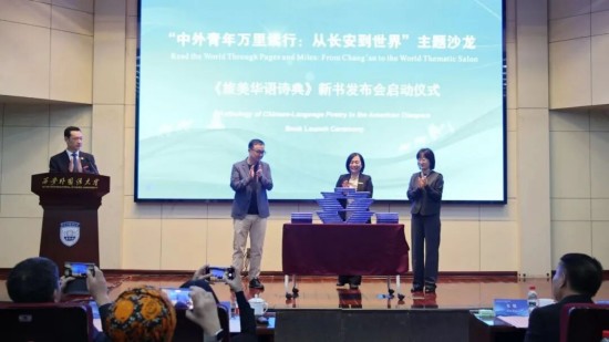 与此同时,当代世界出版社在主会场举办了《旅美华语诗典》新书分享会。受邀嘉宾邓康延、作者唐程分别以“汉语越洋,诗归秦岭”和“回到诗歌的故乡”为主题,分享了对文学跨文化传播的思考。现场学生积极互动,将文化交流的主题延伸至文学与情感层面。