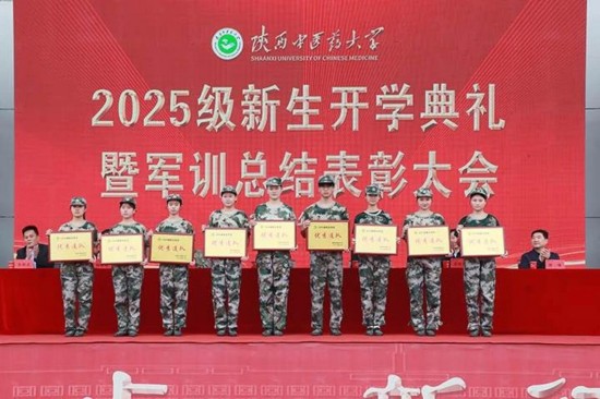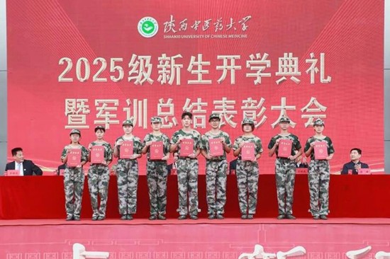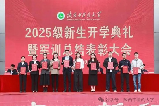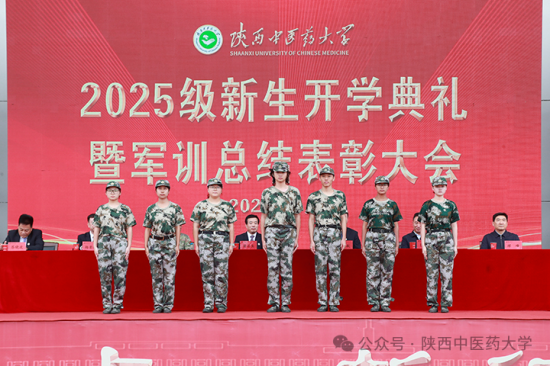 9月24日上午,陕西中医药大学在田径场召开2025级新生开学典礼暨军训总结表彰大会。校党委书记蒲济生,党委副书记、校长杨晓航,党委副书记苏晓波、巨旺民、杨景锋,副校长缪峰及中国人民解放军93897部队领导出席会议。大会由苏晓波主持。