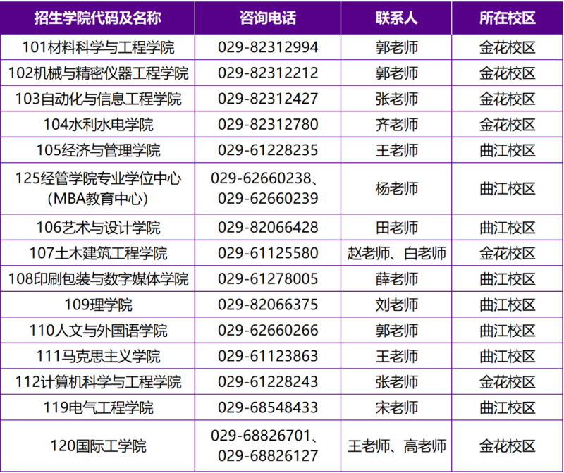 (二)各招生学院代码及咨询电话