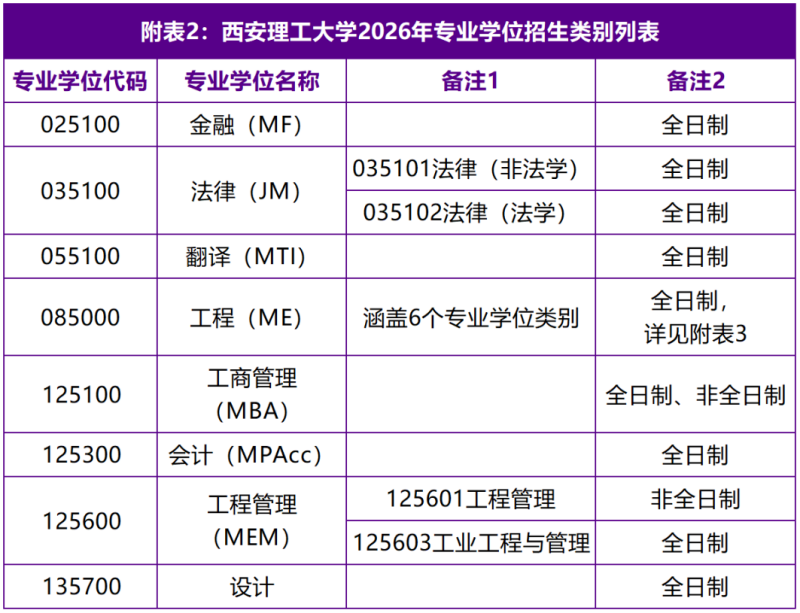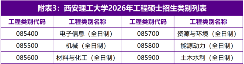 4.工程硕士(Master of Engineering,简称ME)旨在侧重于工程应用,面向工矿企业和工程建设部门,特别是国有大中型企业培养应用型、复合型高层次工程技术和工程管理人才。2026年,西安理工大学在电子信息、机械、材料与化工、资源与环境、能源动力、土木水利等6个工程类别招收硕士研究生。