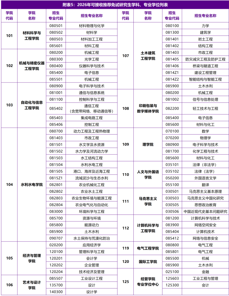 1.西安理工大学部分学术学位学科、专业学位类别(详见附表5),可接收推荐免试研究生的申请。拟被西安理工大学录取的推荐免试研究生,必须具有推荐免试资格并占其所在本科院校推免生计划,占西安理工大学2026年的研究生招生计划。