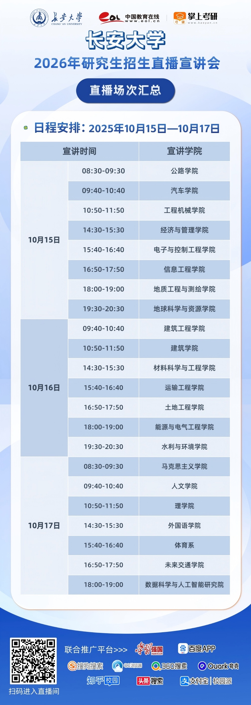 “追求卓越,圆梦长大”2026年长安大学研究生招生直播宣讲活动即将开启