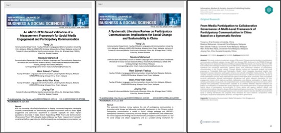 2025年初,探究团队相继在Scoups等国际期刊发表三篇相关论文:首先,运用AMOS-SEM模型验证社交媒体参与与参与式传播的测量框架,为后续研究建立方法基准;其二,基于系统文献回顾提出“从媒介参与协作治理”的多层分析框架,将传播行为放入公共协同语境;其三,总结参与式传播在社会变迁与可持续性议题中的作用与启示。