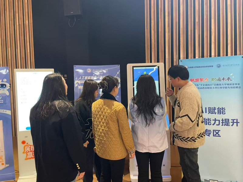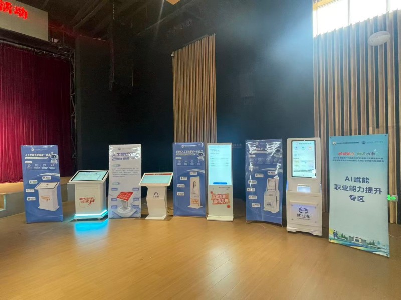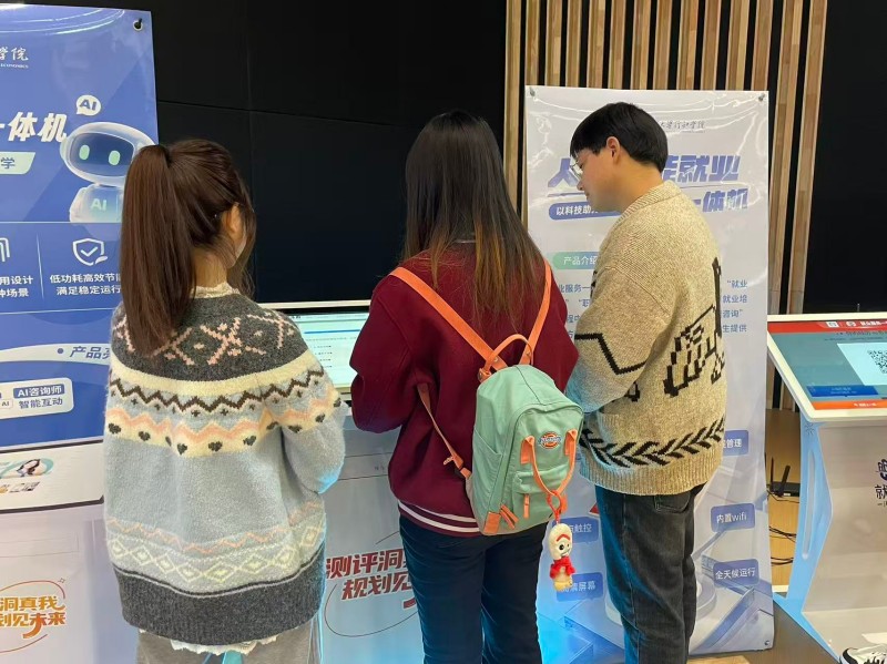 人工智能面试屏:搭载数字人面试系统,支持多岗位模拟面试与智能追问,实时生成面试报告,帮助学生提升实战能力;简历打印一体机:内置“神笔简历”系统,支持一键生成、优化及打印简历,实现简历“即改即打”、高效输出;生涯探索一体机:依托“智绘未来”AI职业咨询师,为学生提供个性化生涯规划与职业测评服务,明确发展方向;就业服务一体机:集成“就业桥”资讯平台,实时推送招聘信息、考证考研动态,助力学生精准投递、高效求职。