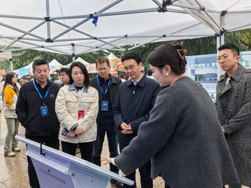 活动期间,西北大学党委常委、副校长张远军一行专程莅临AI赋能职业能力提升专区,详细了解并体验了四款智能就业设备,对其在提升就业服务效能方面的创新应用给予了高度评价。