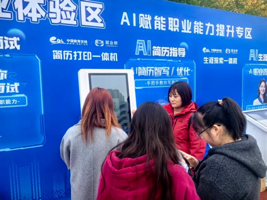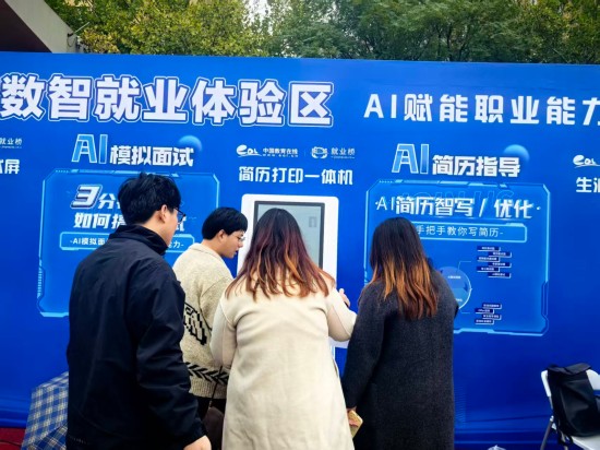 为全面提升就业服务效能,本次招聘会创新性地引入由中国教育在线·就业桥提供的智能就业服务设备集群,构建"智能测评—简历优化—面试模拟—精准投递"一站式就业服务新生态,全方位助力毕业生提升求职竞争力。现场精心设置了四类智能终端设备,形成完整的智慧就业服务闭环: