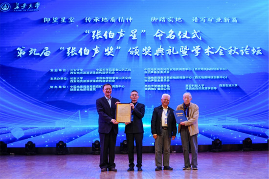 10月25日,“张伯声星”命名仪式暨第九届“张伯声奖”颁奖典礼在我校长安文化艺术中心大礼堂举行。本次活动由长安大学、中国科学院紫金山天文台、中国地质调查局西安调查中心、西安地壳波浪状镶嵌构造研究会、张伯声基金委员会等单位主办和承办,旨在永恒铭记张伯声先生为我国地质科学与教育事业建立的丰功伟绩,传承与弘扬科学精神,激励新一代地质工作者勇担使命、开拓创新。