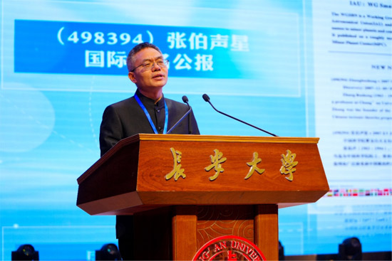 长安大学副校长范文致欢迎辞,代表学校向与会嘉宾表示最热烈的欢迎,并向为此次小行星命名付出努力的各合作方致以衷心感谢。