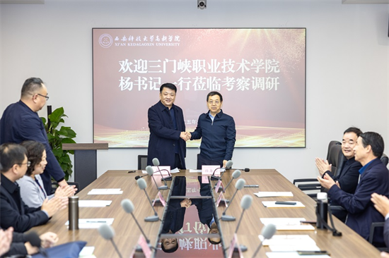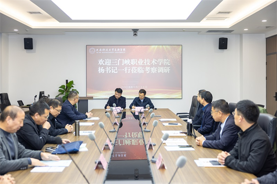 2025年10月27日,三门峡职业技术学院党委书记杨彤率队,副院长彭博、党委委员兼副院长员莹、院长助理李启松等领导一行,赴西安科技大学高新学院开展考察调研活动。西安科技大学高新学院董事长孙龙杰、副院长王福豹、王国良,院长助理胡秋实、办公室主任王智荣等领导,及陕西航天意德高科技产业有限公司、西安西科节能集团有限公司等企业代表参与此次交流,双方围绕教育发展、校企合作、产教融合等领域深度联动,共探发展新路径。