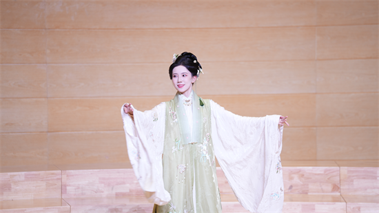 “汉代深衣体现‘天人合一’的哲学,唐代襦裙彰显开放包容的气象……”子虞以服饰为线索,将朝代更迭、社会风貌的变迁娓娓道来,让师生在衣袂飘飘间读懂“衣冠上国”的审美与精神传承,不少同学在试穿后直言“仿佛穿越时空,对传统文化的亲近感瞬间拉满”。
