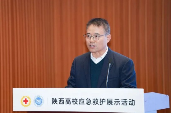 陕西省红十字会党组成员、专职副会长李志刚在致辞中强调,高校作为人才培养主阵地,肩负着应急救护知识普及与技能传承的重要使命。他援引《中华人民共和国红十字会法》指出,红十字应急救护与青少年工作是法定职责,亟须通过“五大行动”构建高校应急能力建设体系:“组织强基”行动推进基层组织标准化建设,“组网协作”行动培育青年传承力量,“生命教育”行动融入思政教育主渠道,“志愿服务”行动促进专业与实践融合,“安全守护”行动筑牢校园安全防线。