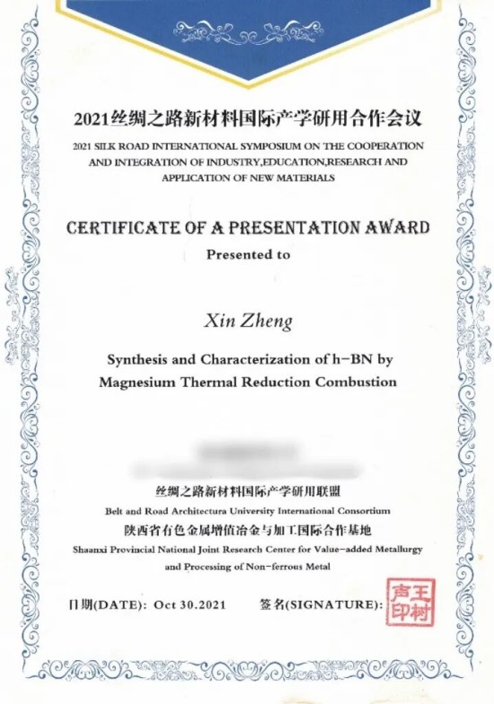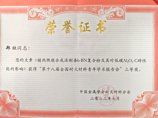 凭借在材料科学领域的卓越表现,郑欣还收获了一系列令人瞩目的成果:她曾作为核心成员参与国家自然科学基金项目、省重点研发计划等省部级科研项目3项;发表学术论文10余篇,其中在材料领域权威SCI期刊发表论文6篇,1篇获得期刊编辑推荐;先后在“丝绸之路国际产业合作与融合学术研讨会”“全国耐火原料学术交流会”等国际国内学术会议作主题报告,并在“第十八届全国耐火材料青年学术报告会”获会议论文三等奖。