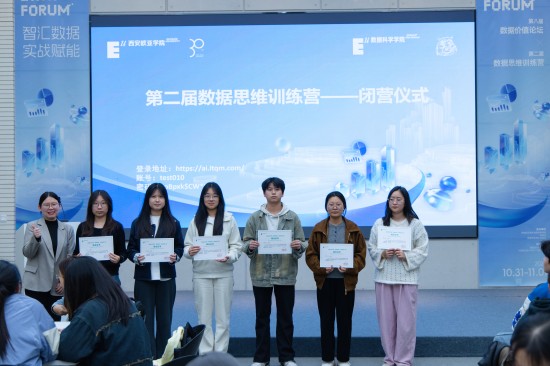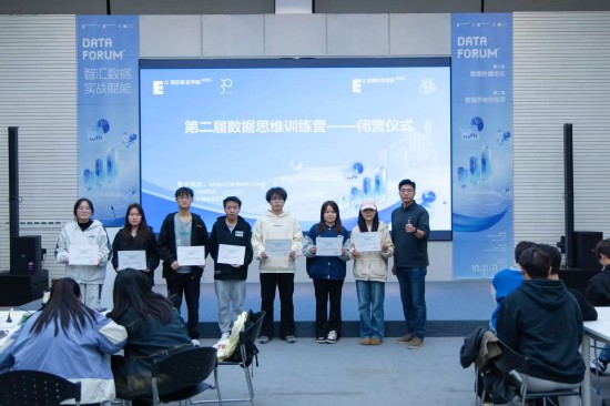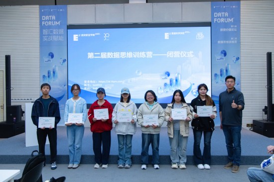 最后,数据科学学院院长助理孟妍与教师史博文颁发结业证书,鼓励大家将训练营所学转化为长期竞争力,在数据科学领域持续深耕。至此,第二届数据思维训练营闭营仪式圆满结束,而学生们的实战成长之路,才刚刚启航。