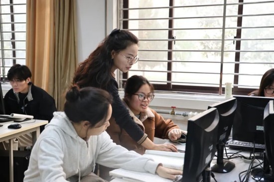 在3104机房内.是王淑芳副教授的《计算机辅助工程造价》课堂,没有传统的板书与冗长的理论,取而代之的是此起彼落的键盘声,屏幕上旋转的建筑模型和小组间热烈的讨论。这里是一个让图纸“活”起来,让造价“动”起来的创新空间。