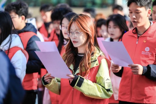 校党委书记孙冰红发表致辞,强调本次研学活动的时代价值,对全体研学师生提出殷切期望,勉励大家在延安之行中深刻感悟初心使命、锤炼过硬意志品质。副校长乔祎为研学队伍授旗,旗帜象征着红色精神的传承,为本次研学活动注入精神指引。
