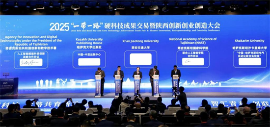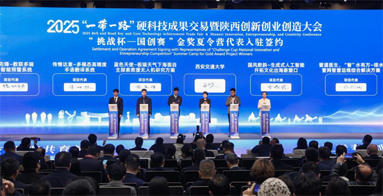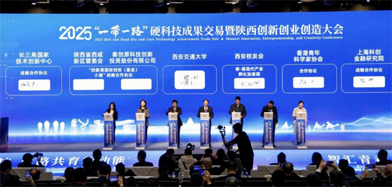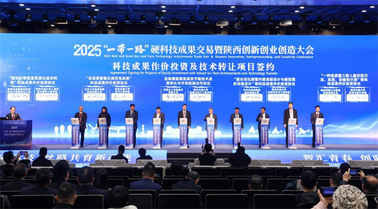 为贯彻落实党的二十大和二十届历次全会精神,进一步深化产教融合,促进科技成果高质量转移转化,培育发展新质生产力,服务现代化产业体系建设和构建人类命运共同体,11月7日,2025“一带一路”硬科技成果交易暨陕西创新创业创造大会开幕式在中国西部科技创新港举行。