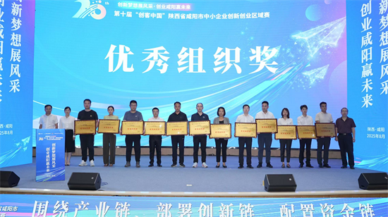 (图七)第十届“创客中国”陕西省区域赛中我校凭借在赛事组织、双创培育领域的突出表现,成功斩获“优秀组织奖”
