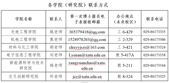 考生在规定时间内提交《西安工业大学2026年第一次博士研究生招生报名表》(附件二)、个人近期一寸免冠照片(以姓名命名)至学院(研究院)指定邮箱(邮箱见文末各学院、研究院联系方式)。