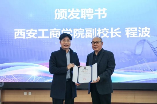 开幕式上,廖民生校长与郑原总编携手为西安工商学院“戏剧影视创作中心”揭牌,标志着西安工商学院与企业协同创新平台、共育传媒英才进入了新的阶段,也为培养应用型传媒人才、助力文化产业发展注入了新动能。随后,副校长程波为受邀专家颁发客座教授聘书。开幕式结束后,全体参会人员在学术报告厅前合影留念。