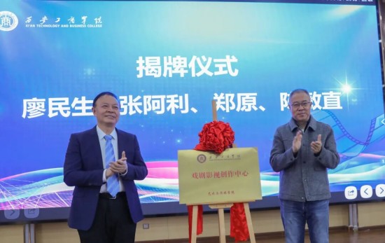 校长廖民生与陕西卫视总编郑原为“戏剧影视创作中心”揭牌