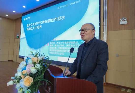 西北大学电影学院院长张阿利教授以《新大众文艺时代微短剧创作现状和高校人才培养》为题,提出新大众文艺在新媒体技术推动下应运而生,重塑了文艺生产逻辑与行业传播格局。微短剧在此背景下迅速崛起成为新兴网络文艺核心力量,在政策引导与市场调节下逐渐迈向精品化、规模化发展。通过对陕西微短剧拍摄基地与机构的系统梳理,张阿利教授重点讲解了陕西微短剧的产业概况及“陕派”微短剧在深耕文化在地性、构建文化传播矩阵的途径。张教授还以西北大学戏剧与影视学科的“人工智能+”建设为例,指出应通过AI工具赋能传统课程促进升级,以达成技术应用与艺术创新的统一,产出有价值的艺术成果。