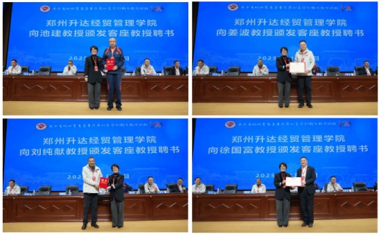 张欣向池建、姜波、刘纯献、徐国富颁发客座教授聘书