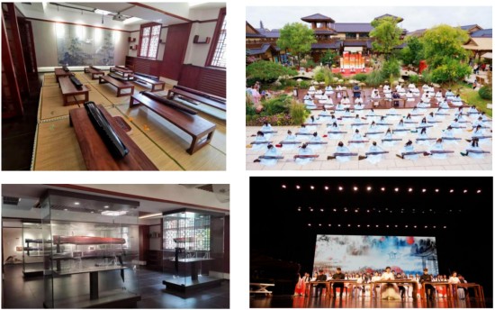基地以正蒙书院为统领,整合校内资源,将古琴基地建设深度融入育人体系。建成涵盖古琴展示厅、艺术馆、研修院、名家名琴展馆、传习所及斫琴工作坊在内的综合性实践平台。以西安外事鼓乐团为载体,基地近三年举办古琴音乐会、高雅艺术进校园、惠民下乡展演等百余场,并赴德国、奥地利、日本、泰国等国开展文化交流。