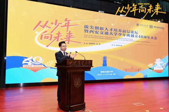 11月29日,“从少年,向未来”——拔尖创新人才培养高层论坛暨西安交通大学少年班创立40周年大会在西安交通大学兴庆校区举行。西安交通大学校长、中国工程院院士张立群,西安交通大学西迁老教授李能贵、胡奈赛,陕西省教育厅副厅长何玉麒、陕西省教育学会会长张新民,中国科学技术大学党委常委、组织部部长申成龙,西安交通大学原副校长程光旭,校党委常委、组织部部长周远出席活动。少年班校友、校内任课教师代表,兄弟院校、中学代表等近500名嘉宾共同参会。大会由西安交通大学校长助理单文华主持。