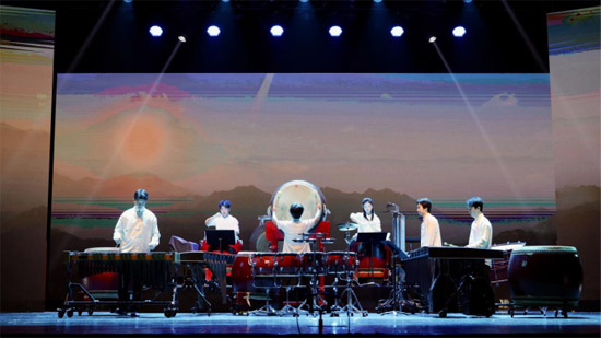 第三幕将演出推向高潮:坐乐《霸王鞭》颂扬西楚霸王盖世气概,击奏与吹奏交织,气势磅礴;行乐《满园春》尽显大唐宫廷音乐的雍容风韵与深远意境;原创跨界打击乐作品《晨钟暮鼓》,融合西安鼓乐特色打击乐器及节奏类型,与现代打击乐共同勾勒出古城钟鼓和鸣的音画。